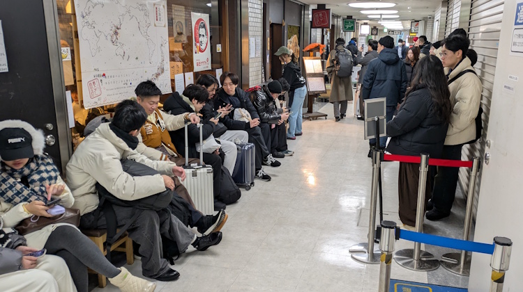 The Ekimae Soseigi Okushiba store in Sapporo opens at 11 AM.  I arrived at 10:40 AM (on a weekday) – 20 minutes before they opened – and there was already a crowd; I was 10th person in line.  By the time they opened, there were maybe 30 people waiting.