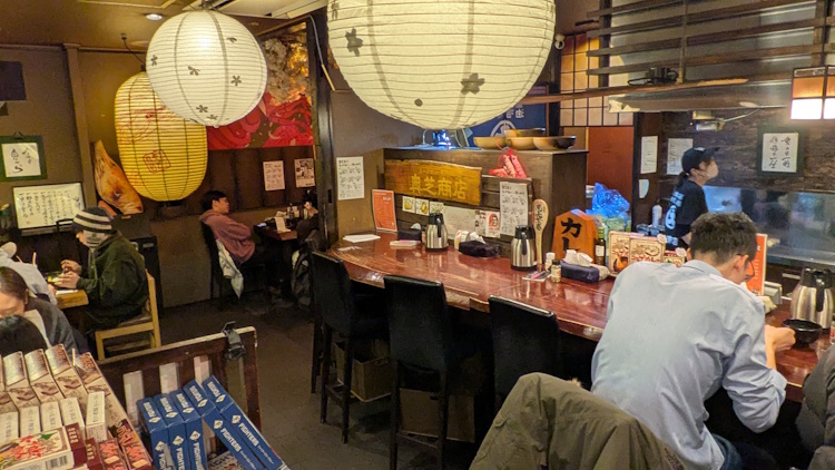 Inside, nice place.  Not at all “plastic and modern” – I appreciate that traditional feel. It’s an old shop, with real character.  I was seated at a thick wooden counter top. There is lots of wood in this shop, in fact.  It’s been here a while.  Feels pretty good inside.