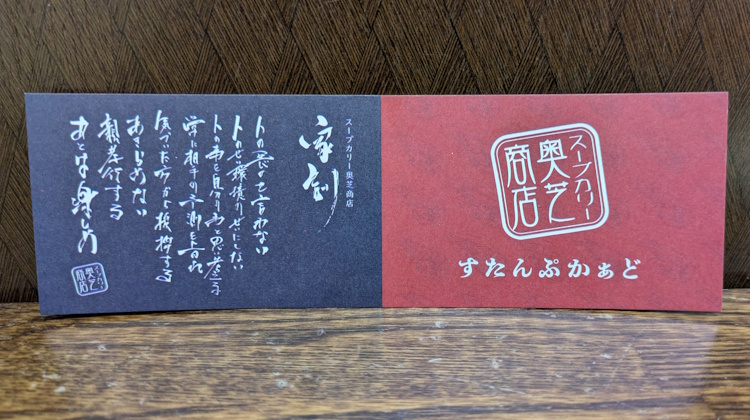 This particular shop is known as Okushiba Ekimae Soseiji.  Ekimae is Japanese for “in front of the station” (although this shop is more like “tonari no eki” – next to the station).  We suspect the Soseiji is in reference to Soseigawa river (which is a couple of minutes away from this shop).  The Japanese name is スープカレー奥芝商店 駅前創成寺(Soup curry Okushiba Shoten Ekimae Soseiji).