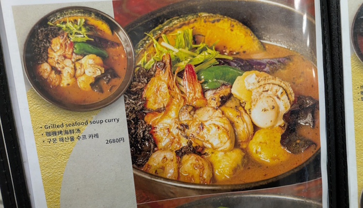 For my part, to try something a bit local-Hokkaido, I ordered the Grilled Seafood Soup Curry.