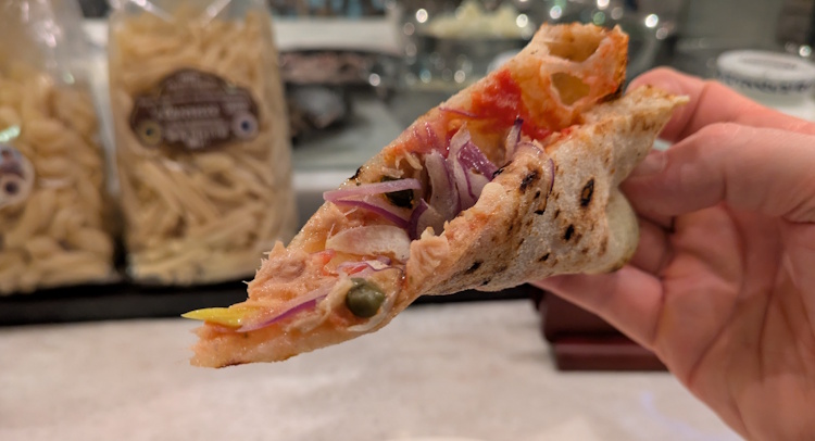 Overall, this Funghi e Salsiccia Pizza was a much more high-impact pizza than the tuna, better than the tuna. That spicy basil smell was good stuff. Compared to tuna pizza, the sausage was much more bold, more aggressive.