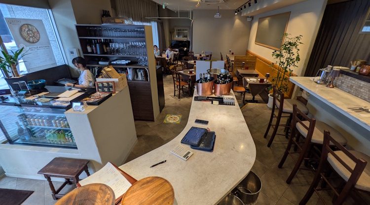 Inside: nice place, more modern that most of Sapporo. There are about 10 tables. Closer to the kitchen, there are some counter seats from which you can see the pizzas going in and out of the oven.