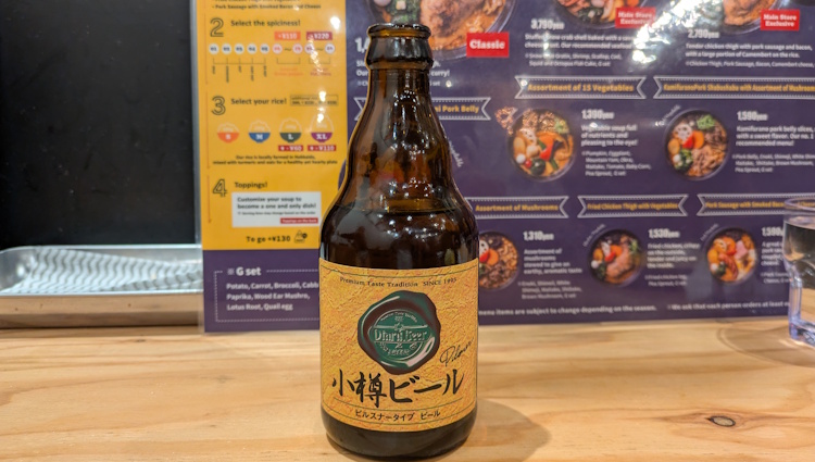 I did have a sip to two (for “Science™”), and… that was a tasty beer; dry, bitter, reminded me of lemon. Delicious, and an excellent palate cleanser versus all that savory soup. A shout-out to the brewer, Otaru Beer. Good stuff.