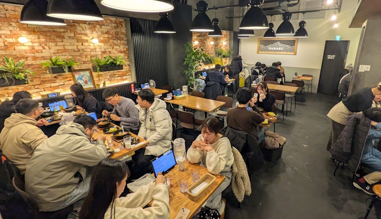 If you’re local, sometime in Sapporo in the off-season, it will probably be easy to get into the main Garaku shop without much of a wait. It is a huge basement-level shop, probably seats almost 70 guests (?). But if you’re a tourist, perhaps here for the Sapporo Snow Festival, you will be fighting every other tourist to be at this spot, during the time everyone else wants to be here as well. Crowded.