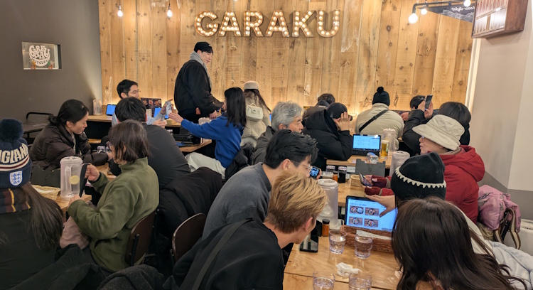I came back even earlier the next day. This time I arrived at 45 min before they opened, there were already maybe 20 people in line. It was cold, and the streets were icey, and I watch I watched tourists falling down in all directions; slipping on the ice, tripping over the crowd-control chains used to organize the line at Garaku. In the crowd, there were Thai voices, some Beijing accents, but not only foreigners, the some Japanese tourists as well.