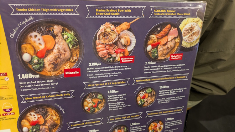 However; the Sapporo Garaku main store soup curry menu does have some special versions of soup curry. For those specific flavors, the Main store is only place to find them.