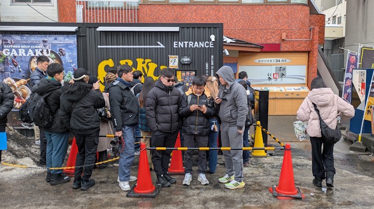 If you come to Hokkaido, you should have some soup curry. I do like soup curry, but I don’t like these super-hyped tourist experiences. Personally, I would recommend Garaku – maybe the best taste in the city. But this location is too choked with crowds – all of the other Garaku shops offer the same flavors and a better experience.