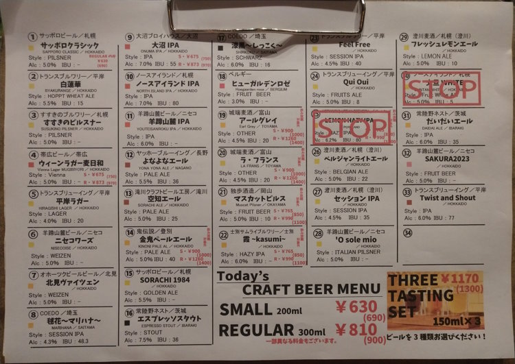 Here is a recent picture of the beer menu at The Craft in Sapporo:
