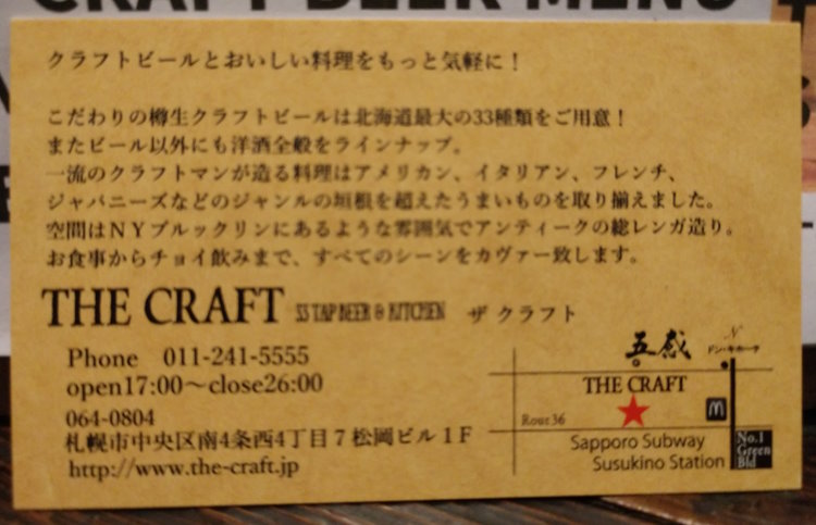 The Craft is easy to find and convenient (especially if you have plans before or after in Susukino). The food is good. The atmosphere is fun. It’s a good time. Check it out.